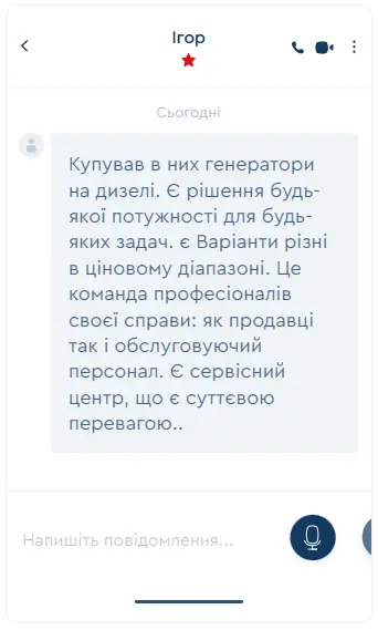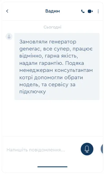 - Крім того, ми реалізуємо власні генератори NIK, які відповідають міжнародним стандартам якості та надійності. Продукція NIK забезпечує стабільну роботу в будь-яких умовах. Багато наших клієнтів використовують генератори NIK понад 10 років, що підтверджує їх високу продуктивність та довговічність.
